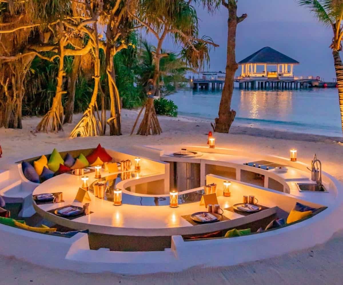 One culinary experience I haven’t talked about yet is the newest addition Riha. Imagine a sunken dining and kitchen area on the beach where you go on a culinary 8-course journey through India. Thanks to the centuries of trading between the Maldives and India, this experience is one not to be missed. I would suggest making reservations on time cause seating is very limited.